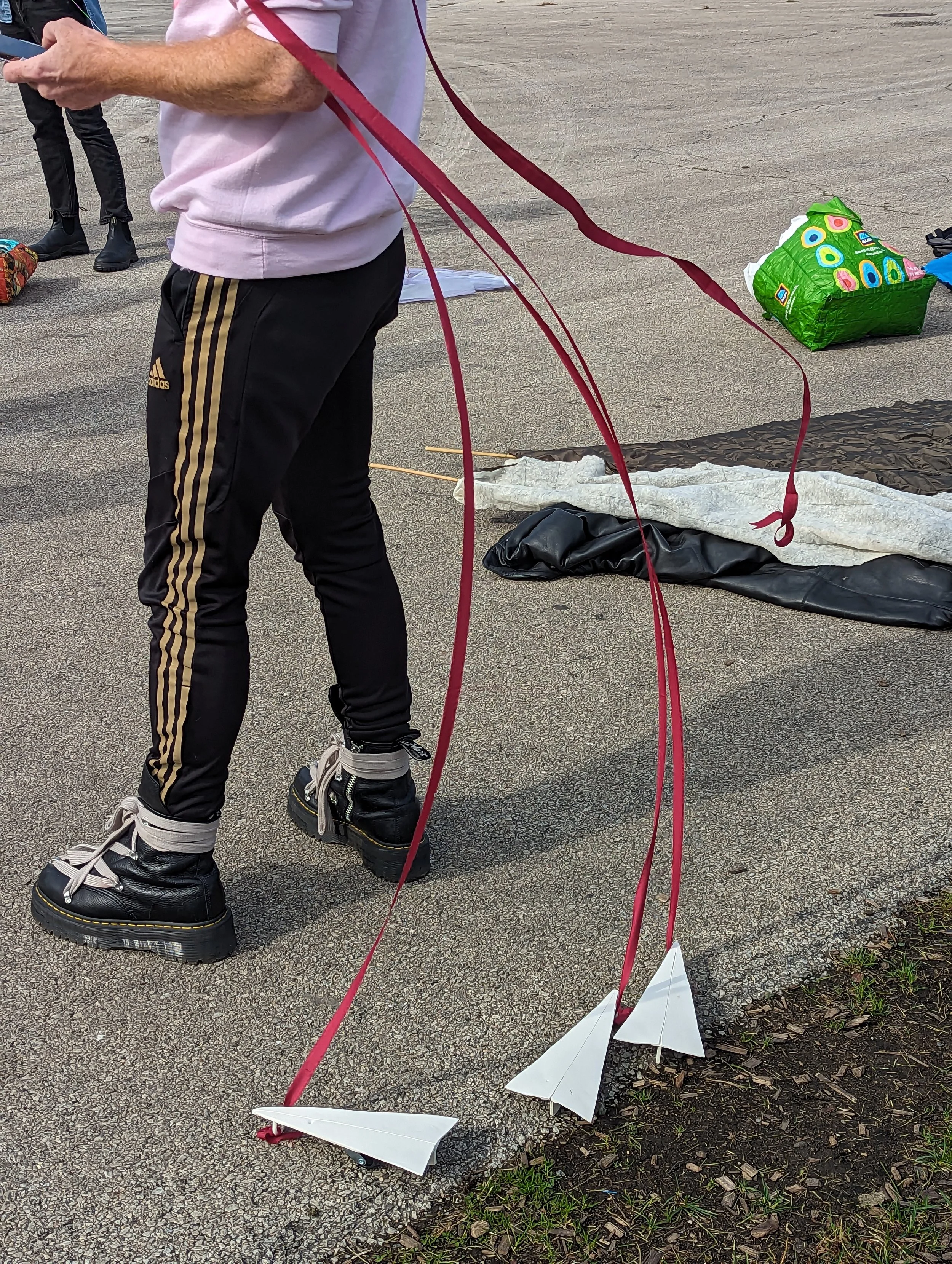 Skye Weimann prepares their kite for its inaugural flight